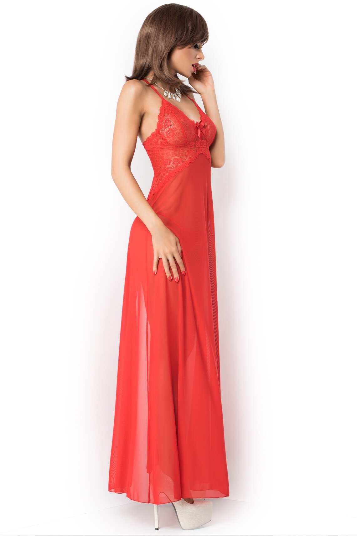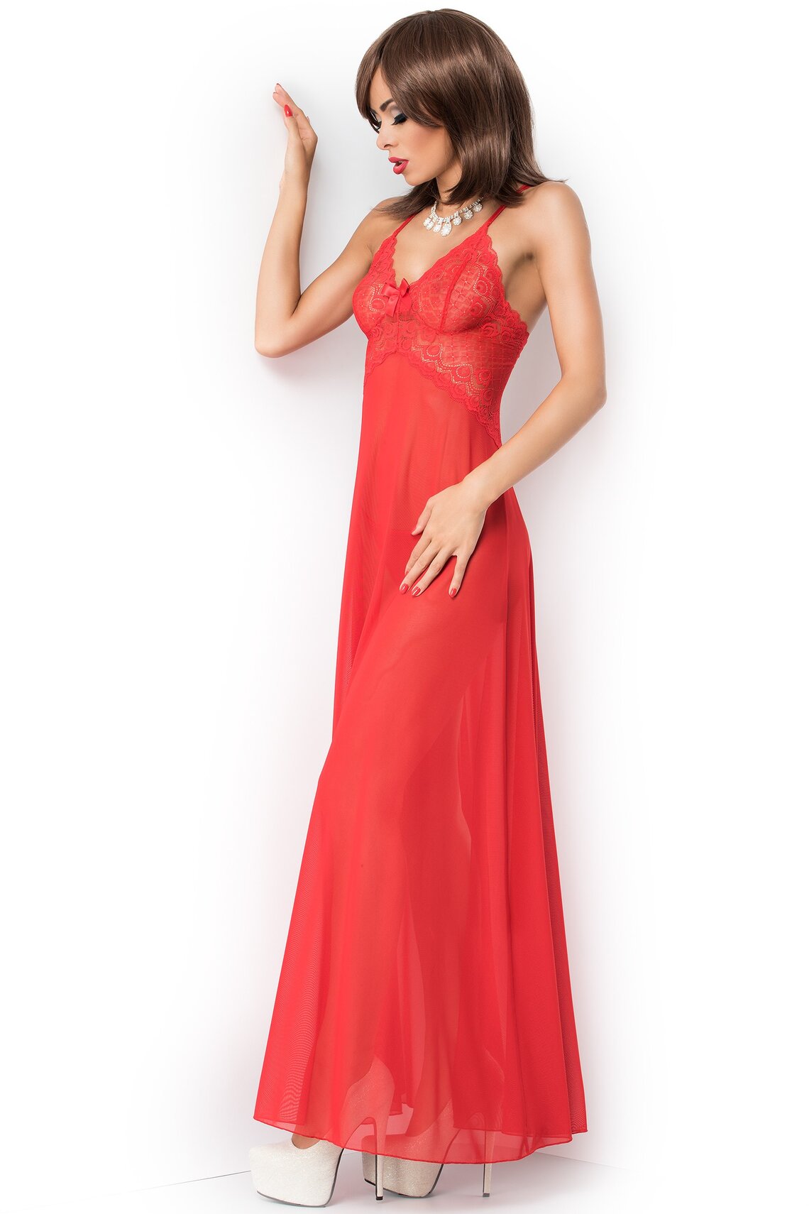 Camisa de noite longa com abertura nas costas. Disponível em vermelho e preto.