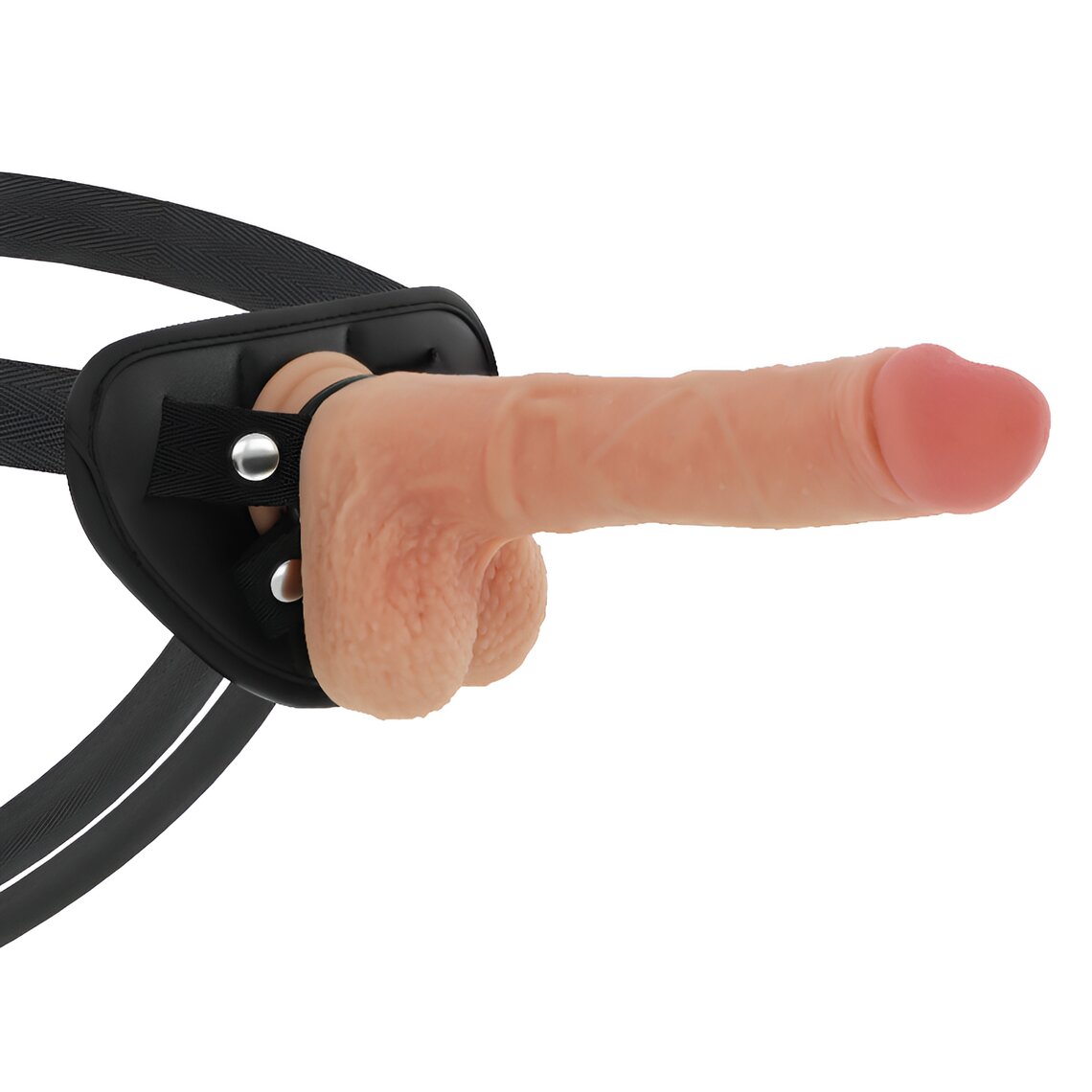 Arnês com dildo realista em silicone líquido e anéis intercambiáveis