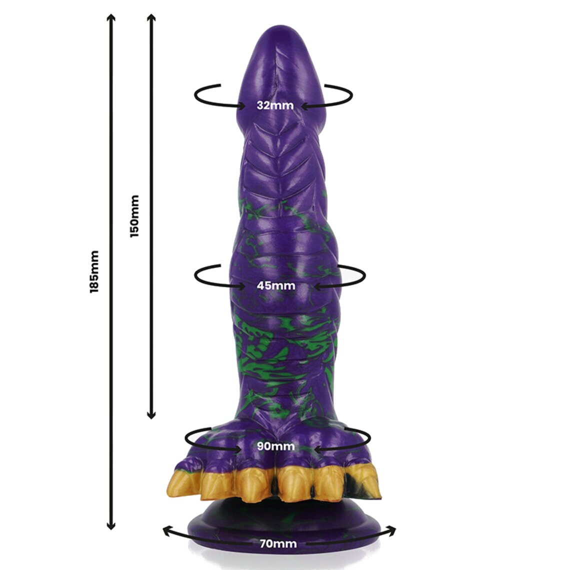 Dildo de fantasia na cor índigo inspirado em um monstro com pernas e cauda. 18,5 cm de altura.