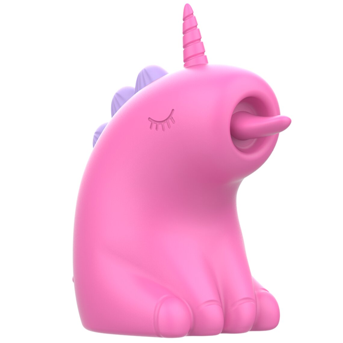 Vibrador divertido em forma de unicórnio rosa. A língua vibratória estimula o clitóris.
