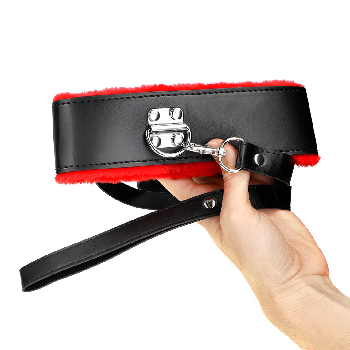 Coleira com trela concebida para combinar estilo, conforto e resistência. A sua estrutura larga e acolchoada proporciona uma sensação suave ao contacto com a pele, enquanto o contraste entre o exterior preto e o interior vermelho cria uma estética marcante e elegante.