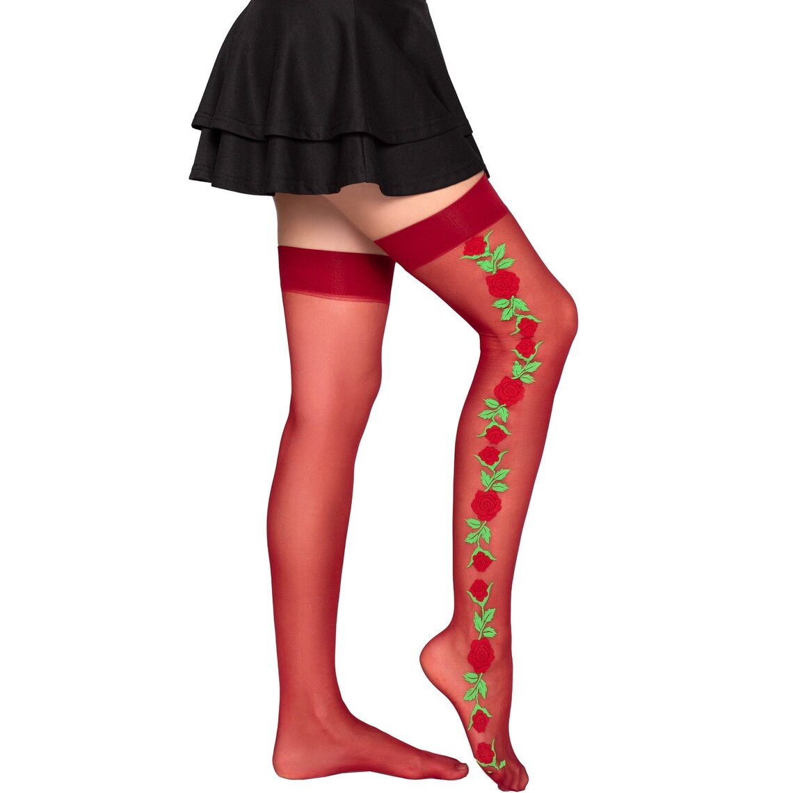 Código SkuLEG-AVENUE-1957-GARTER-BELT-STOCKINGS-WITH-RED-FLOWERS-ONE-SIZE