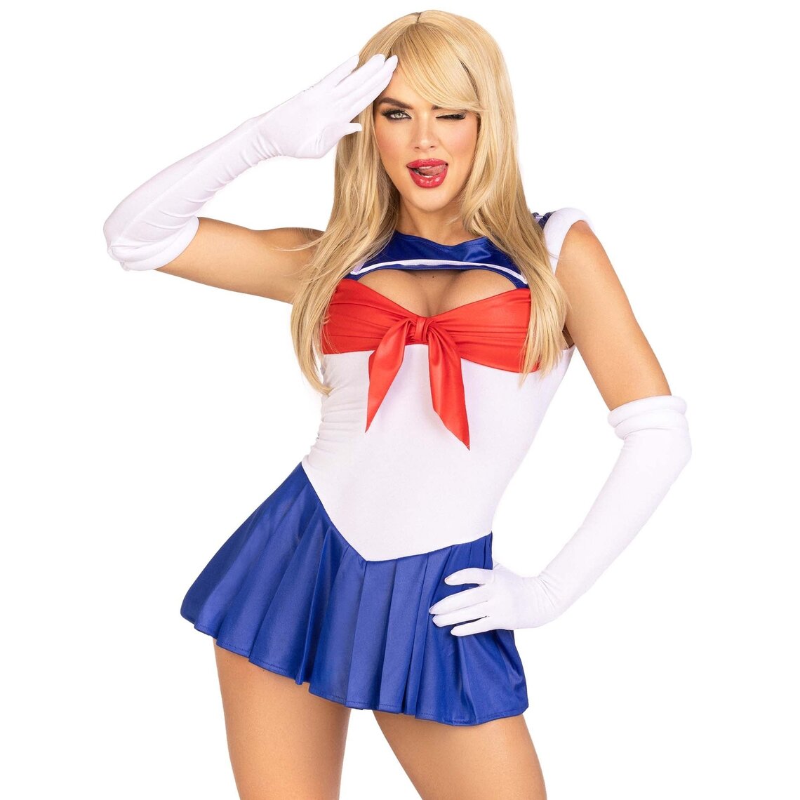 Liberte sua diva de desenho animado interior com este conjunto Sexy Sailor de 3 peças inspirado na cultura pop! Ideal para o Halloween ou carnaval, este body atrevido com fecho de pressão é destacado por um corpete recortado e uma saia plissada divertida.