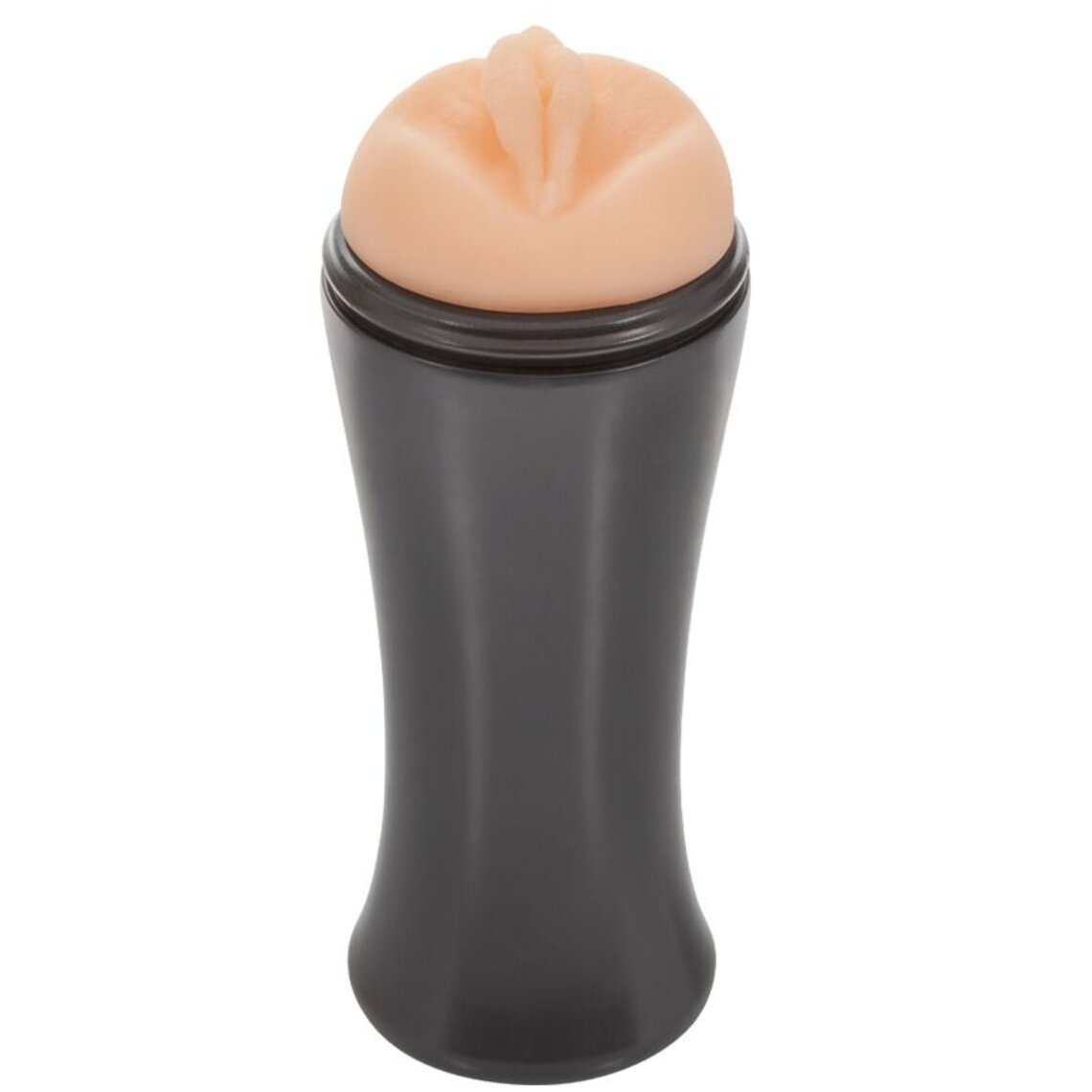 Vagina em lata para masturbação. Masturbador de viagem em silicone com textura realista.