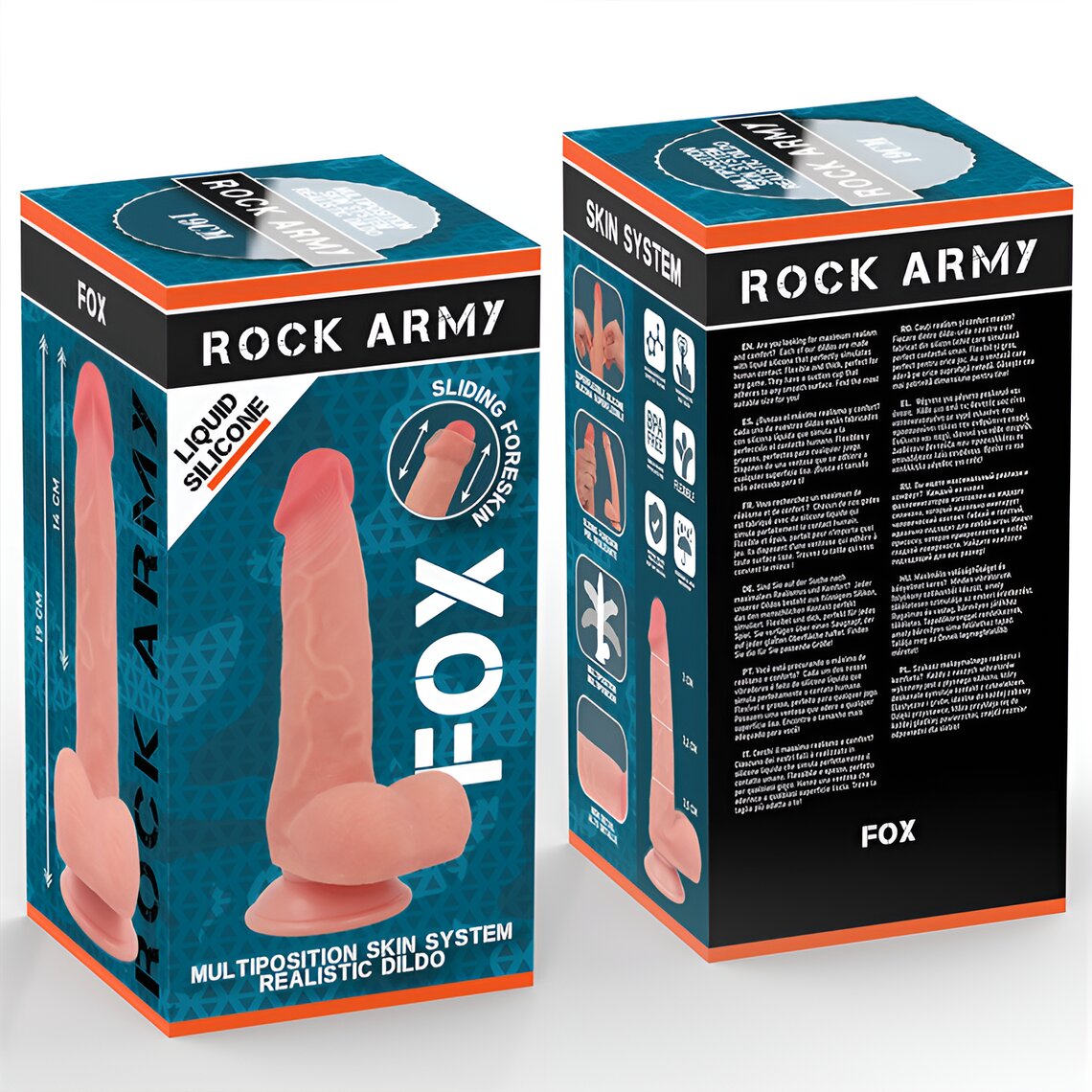 • Descrição do produto  Rockarmy Fox - Dildo Realista em Silicone Líquido 19 cm