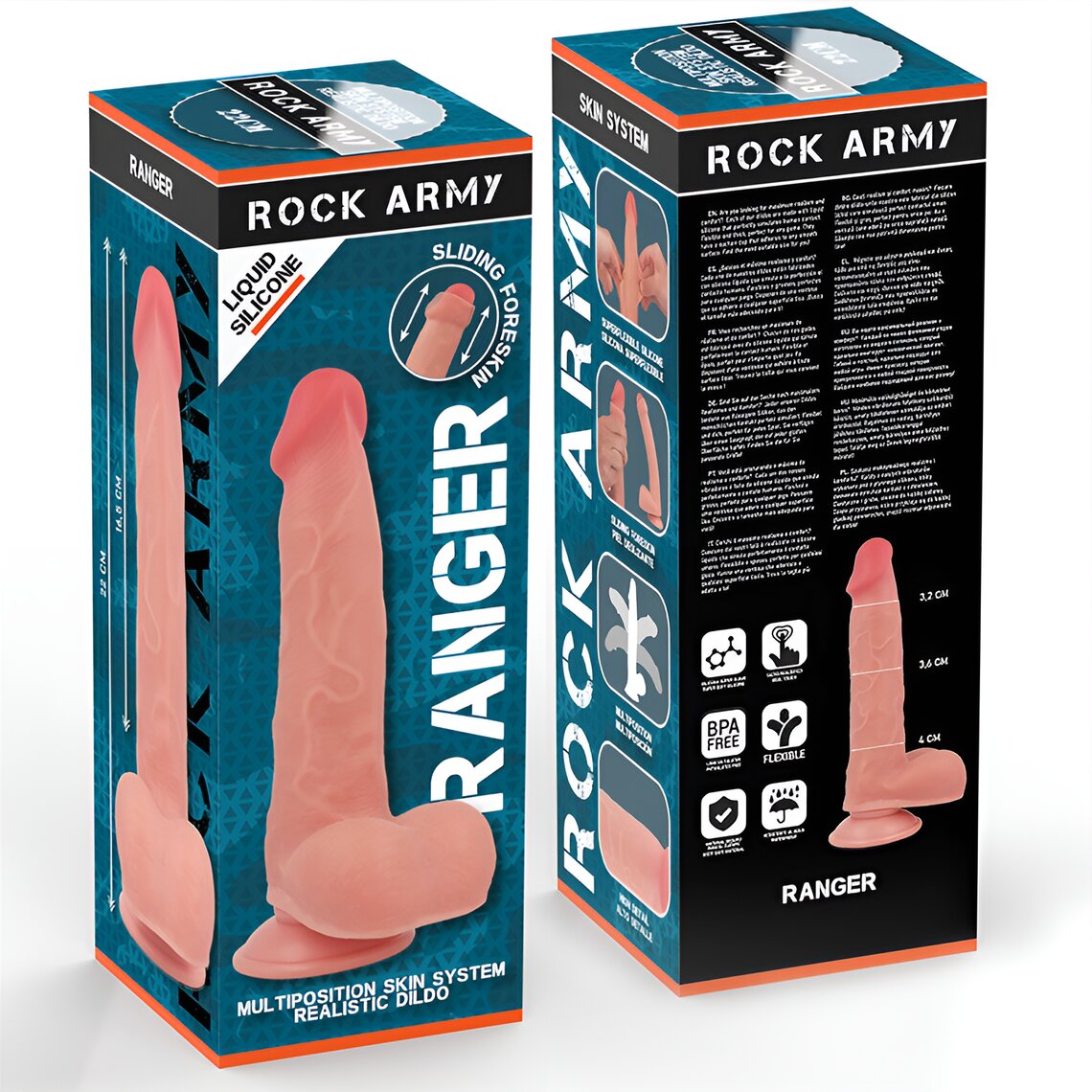 • Descrição do produto  Rockarmy Ranger - Dildo Realista em Silicone Líquido 22 cm
