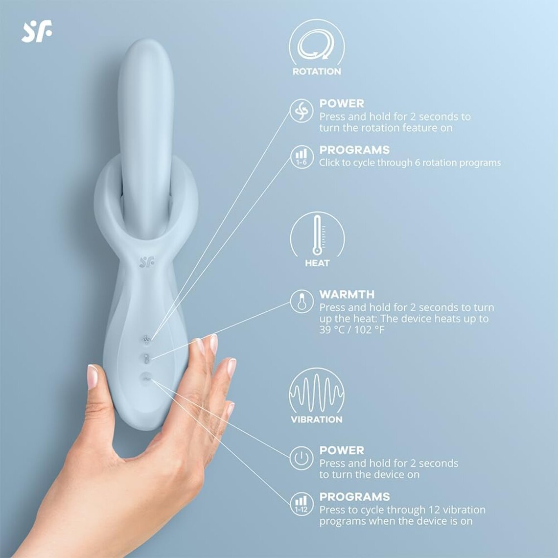 • Satisfyer Heat Flex 4 - Vibrador rabbit com efeito de calor (Azul Aço Claro)