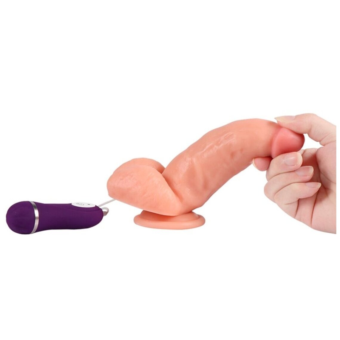 Pênis realista de 16 cm com vibração e ventosa. Controle remoto com fio.