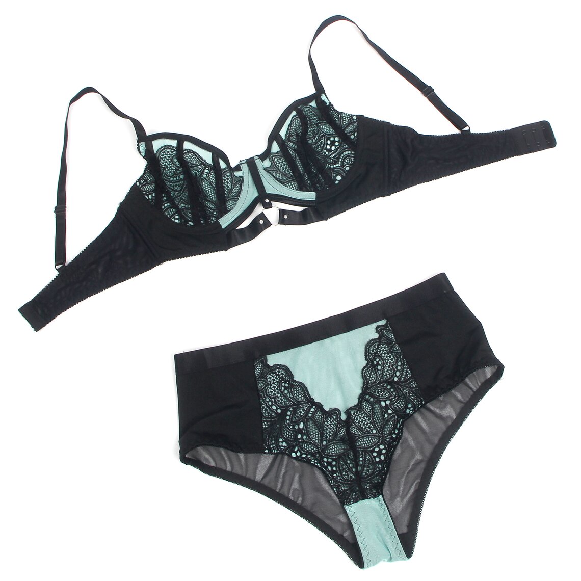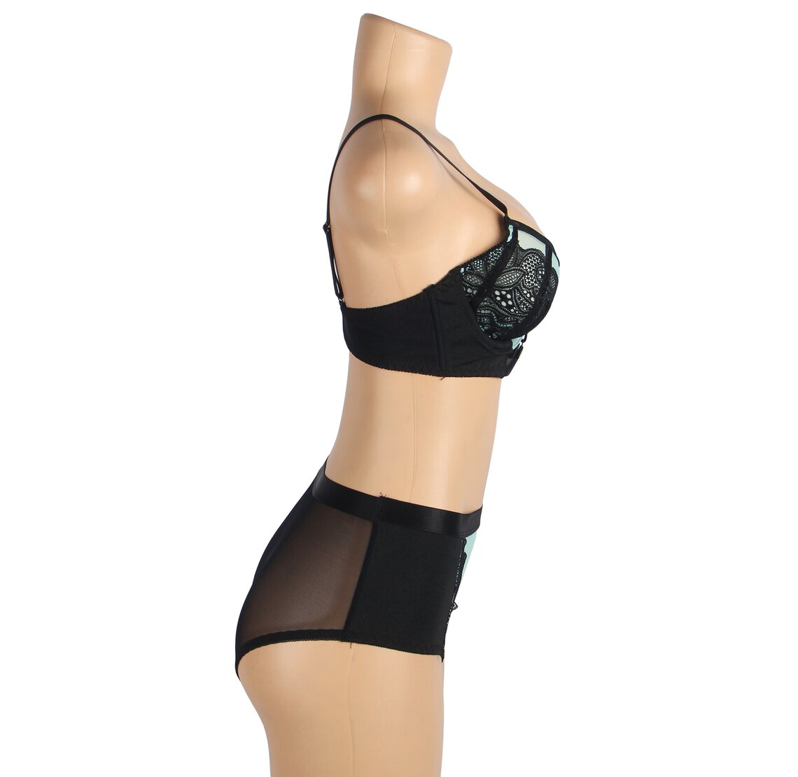 • ◾  Combinação de renda floral e malha translúcida.