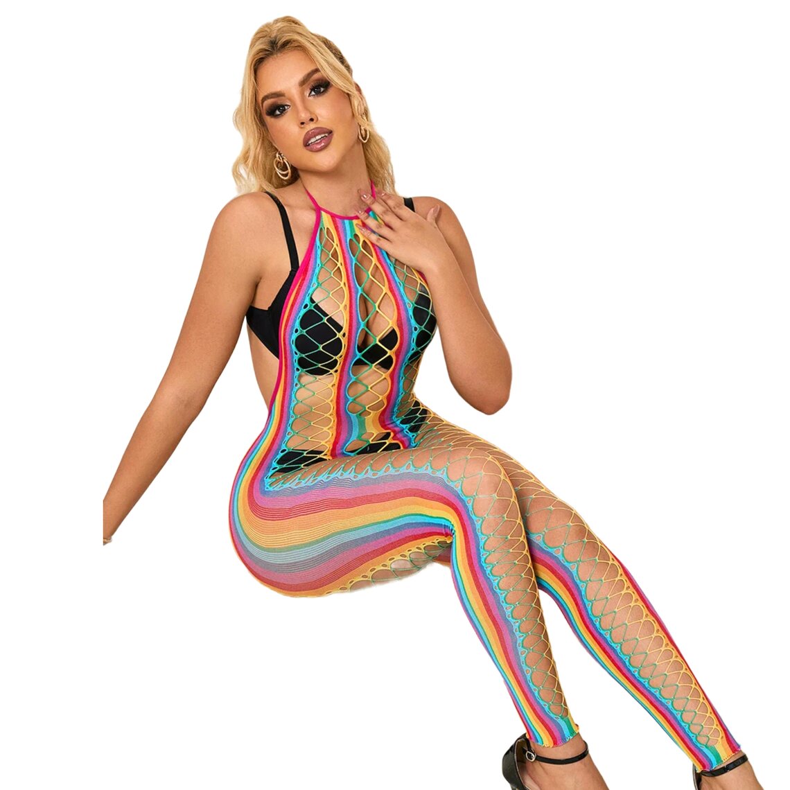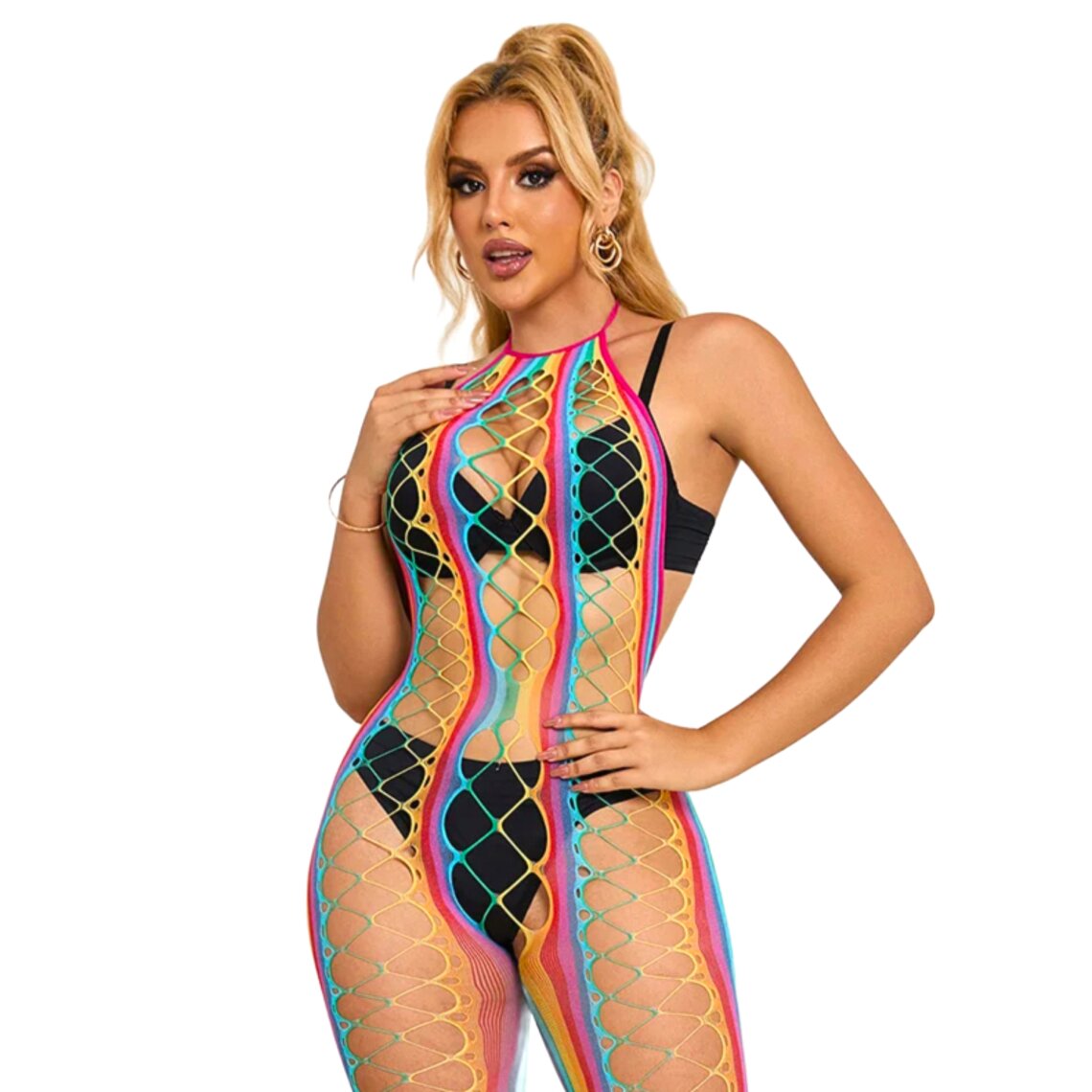 Código SkuSUBBLIME-952358-RAINBOW-HALTER-NECK-FISHNET-DRESS-ONE-SIZE
