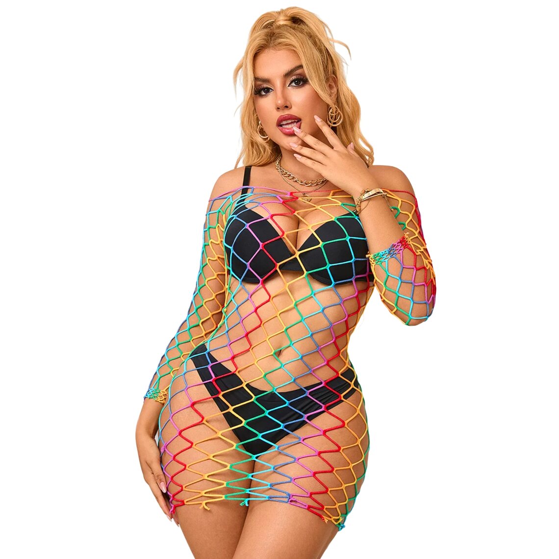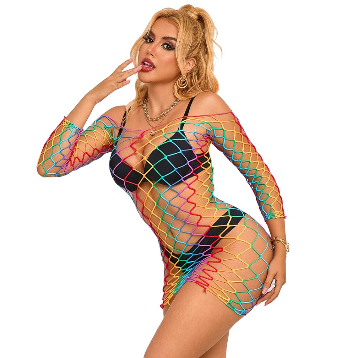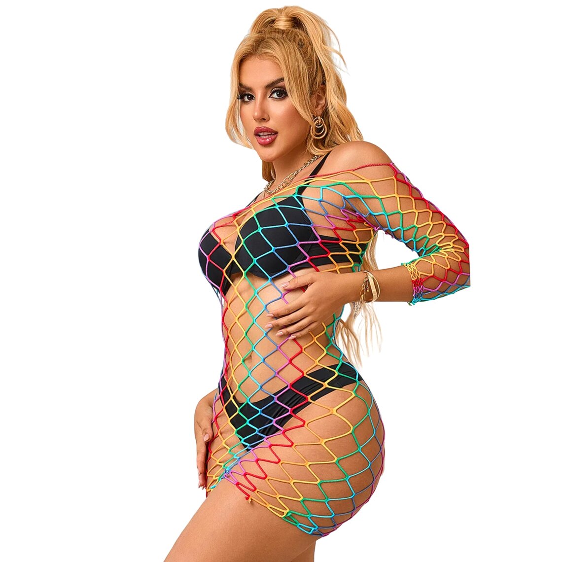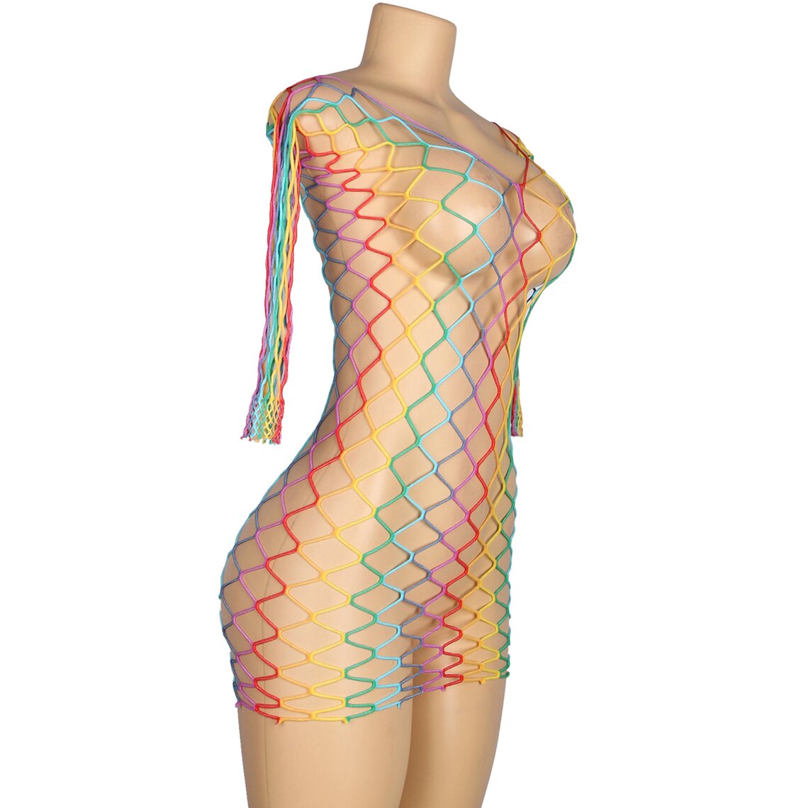 Código SkuSUBBLIME-952426-RAINBOW-LONG-SLEEVE-FISHNET-DRESS-ONE-SIZE