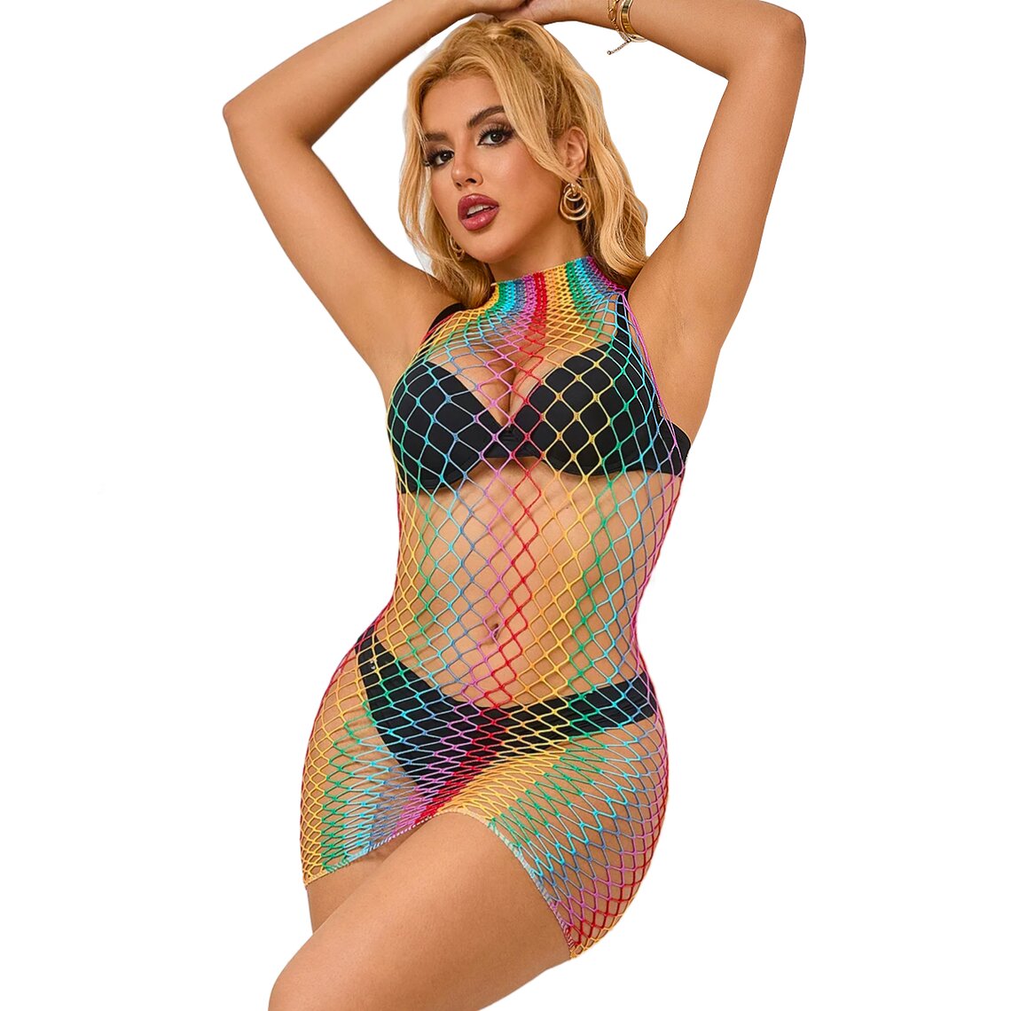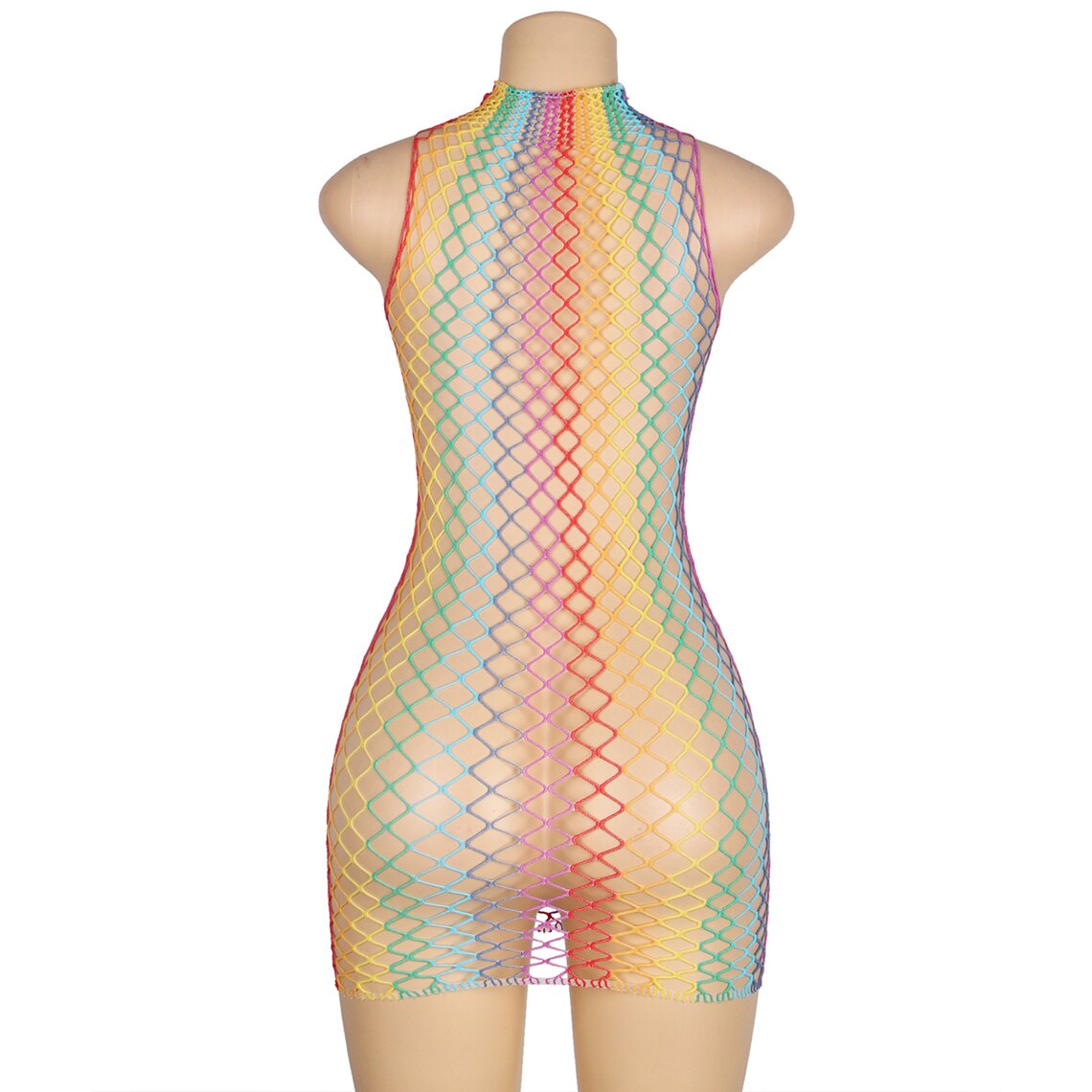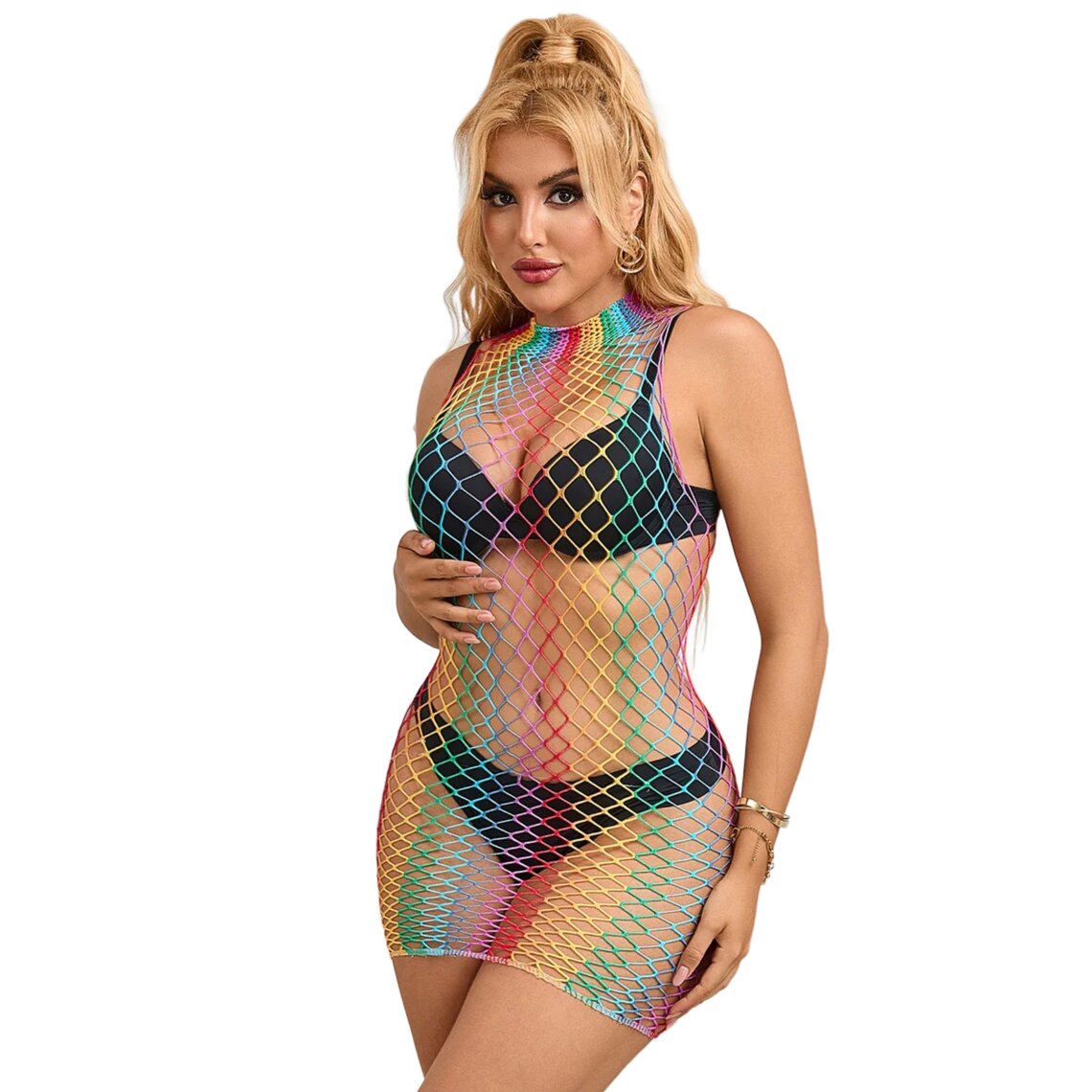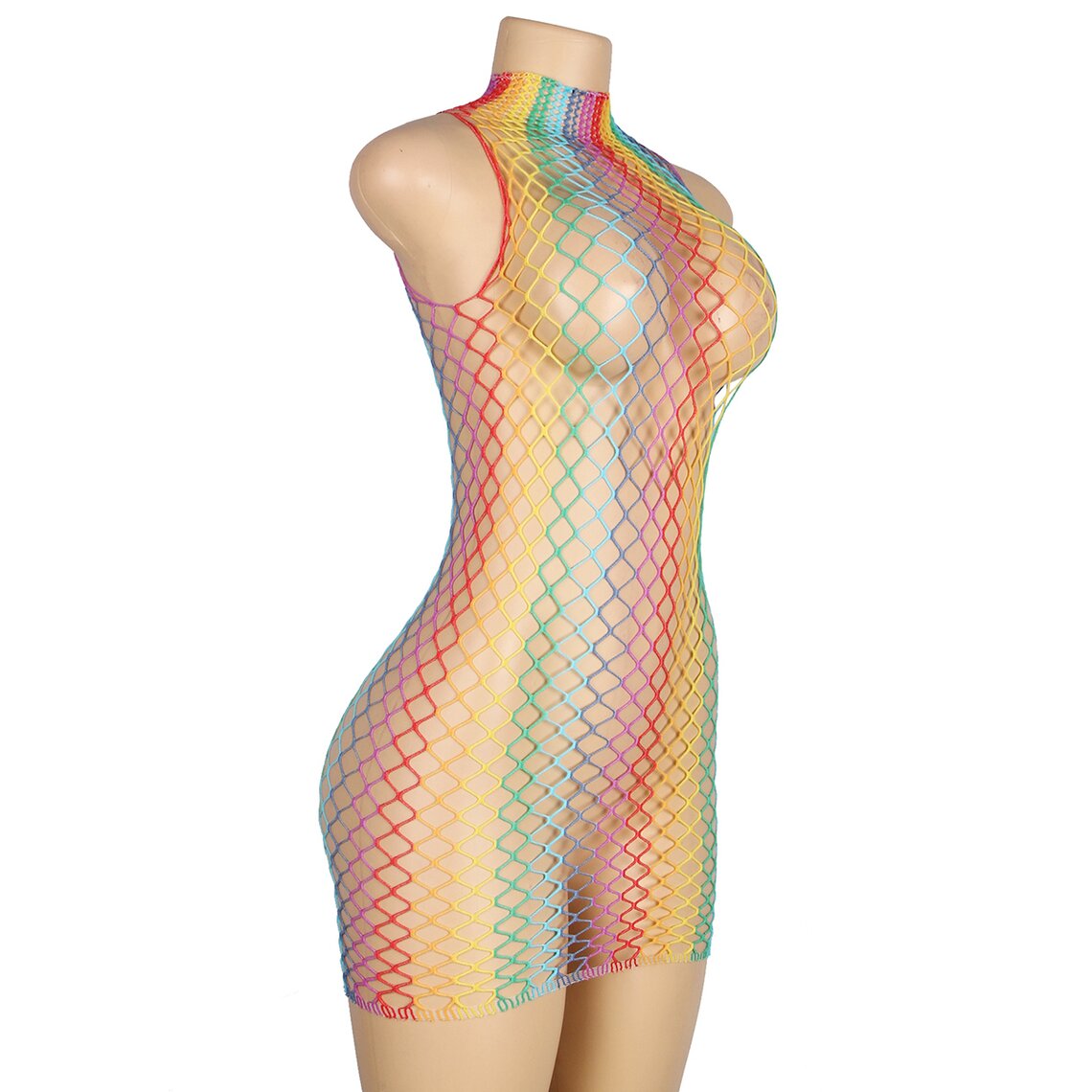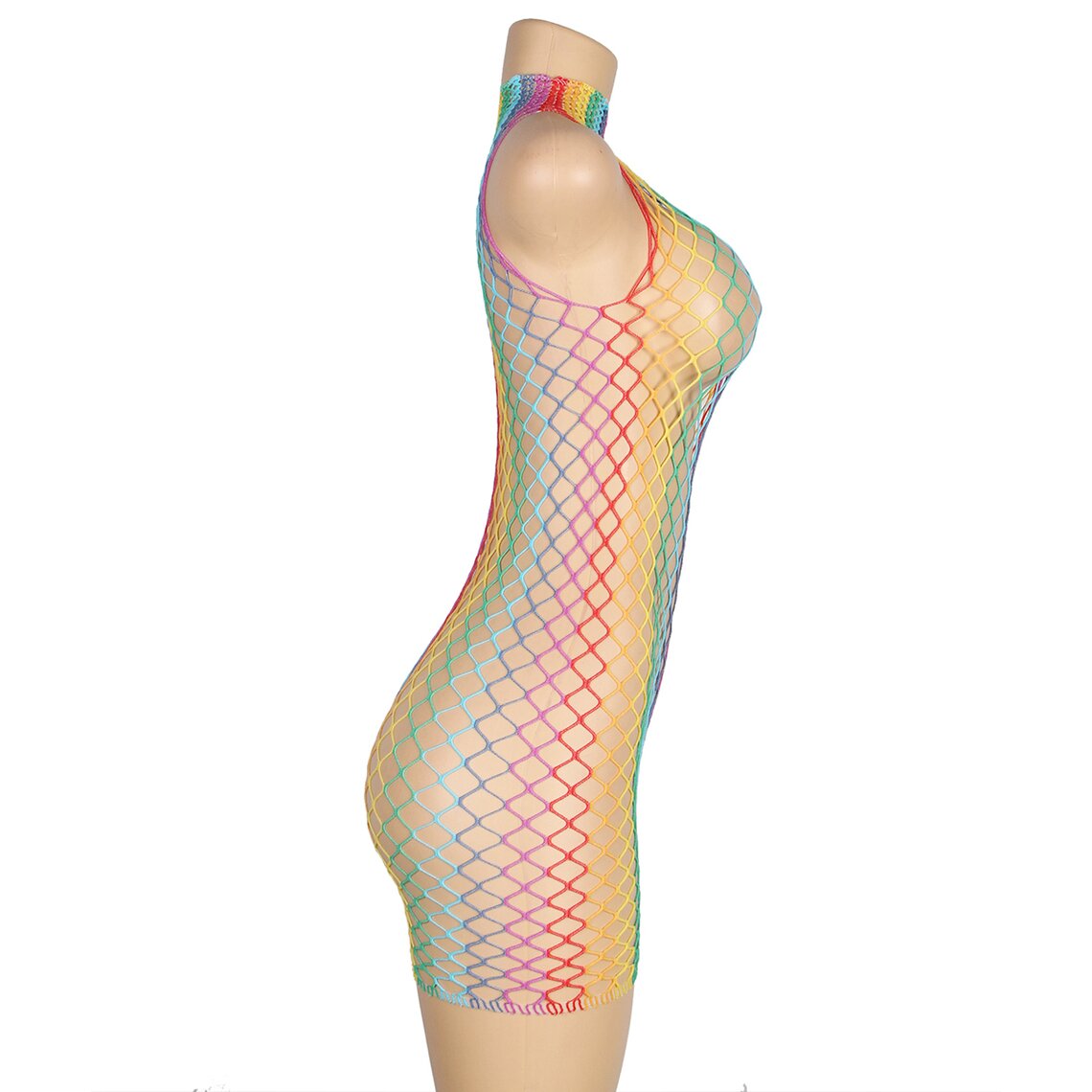 Código SkuSUBBLIME-952433-RAINBOW-HIGH-NECK-SLEEVELESS-FISHNET-DRESS-ONE-SIZE